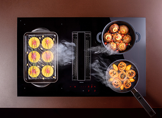 Итальянская варочная панель из стеклокерамики черного цвета. Компактные размеры (84.1×52×20.9 см). Современный элегантный дизайн.